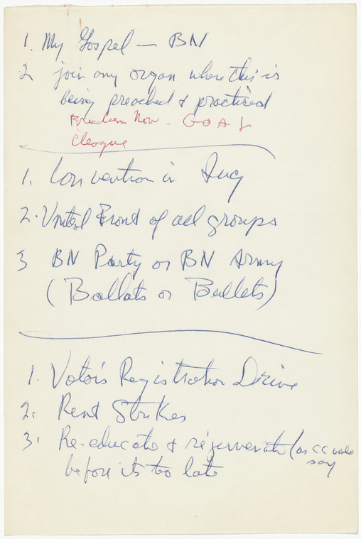 In this speech, the minister and human rights activist submits a charge to the ‘Black’ people of the United States of America with his blueprint on their future political and economic survival.